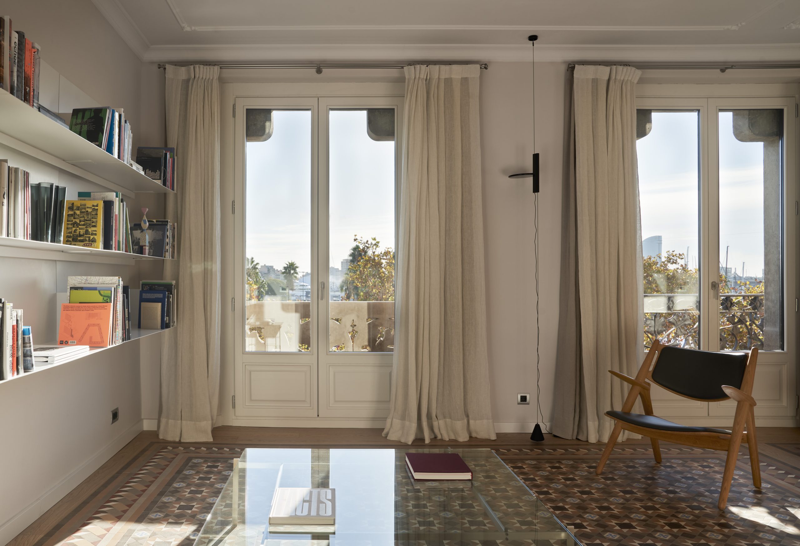Ubicado en un edificio emblemático frente al puerto de Barcelona, este piso es una joya que fusiona la elegancia histórica de la arquitectura modernista con un diseño interior contemporáneo y sobrio. Al cruzar el umbral, el suelo hidráulico en colores y patrones originales nos transporta al esplendor de otra época, mientras que las molduras en los techos y las vidrieras de colores añaden un toque artístico que evoca la esencia de la Barcelona más clásica y sofisticada.